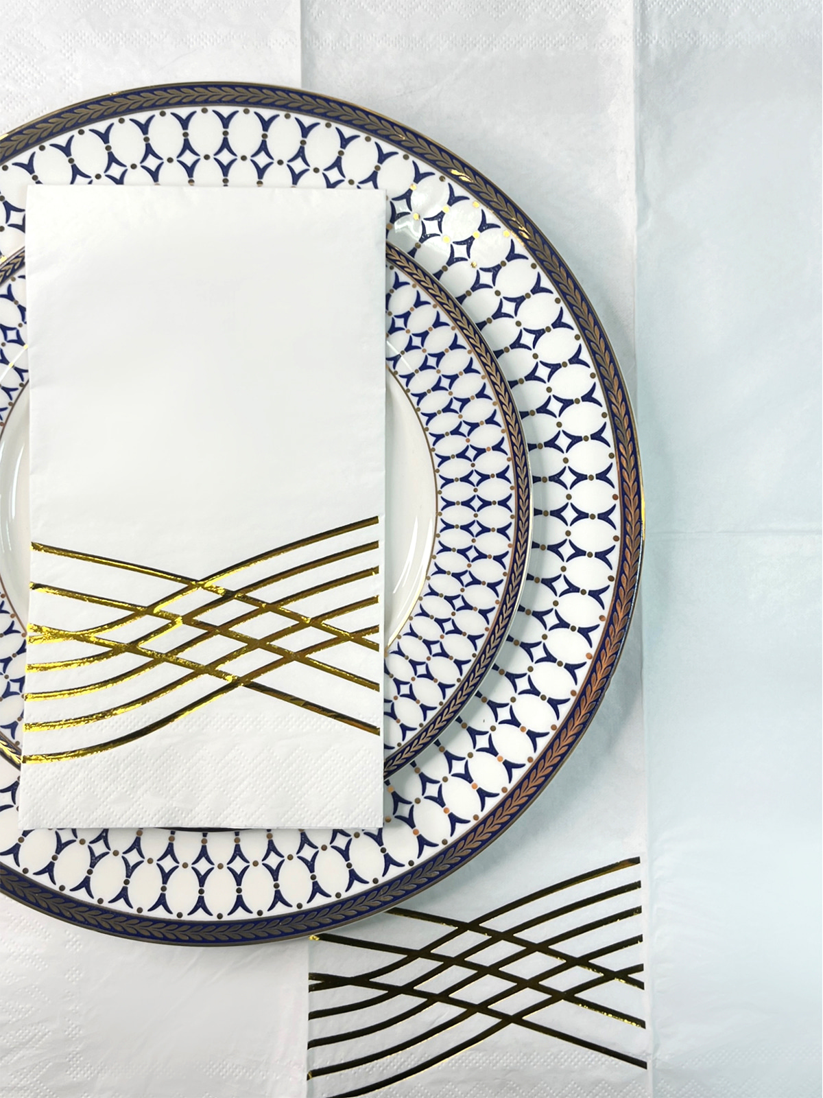 Disse gjesteserviettene har en enkel hvit bakgrunn med gullfoliekant, noe som gjør dem ideelle for middagsservise, bryllupsfester, bad, kjøkken og restauranter.