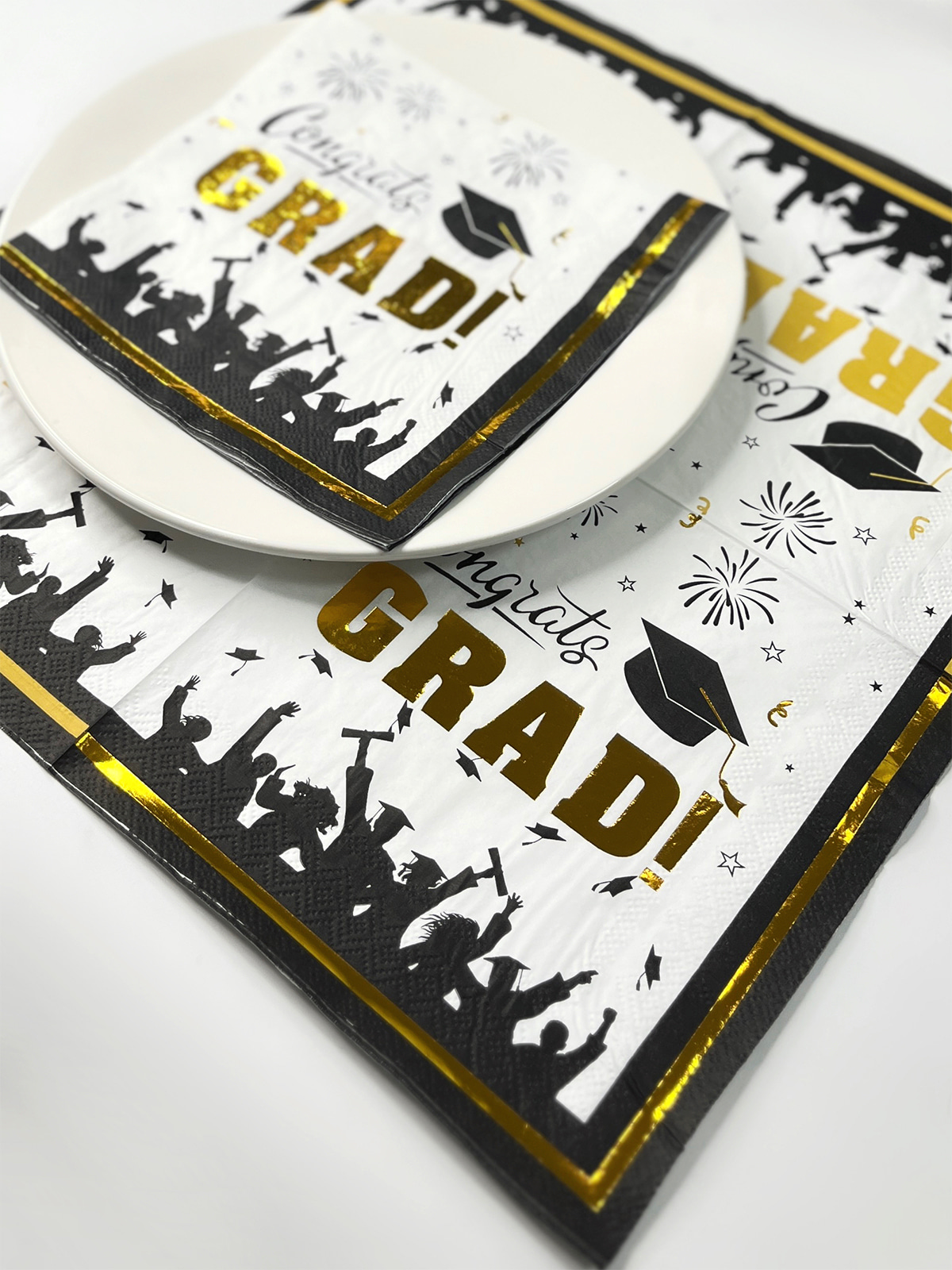 Vi tilbyr to fargealternativer - blå og svart - begge med "GRAD"-aksenter av gullfolie. Blått symboliserer vitalitet mens svart representerer modenhet, og inkluderer elementer fra konfirmasjonssesongen for å forbedre den festlige atmosfæren.