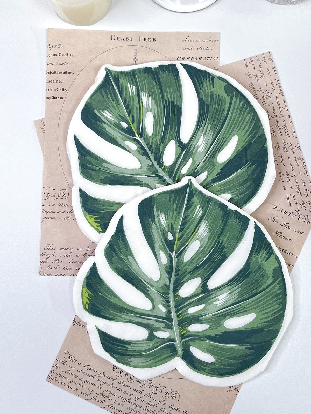Disse grønne bladformede papirserviettene er enestående festrekvisita for fester med jungel og Hawaii-tema. Den livlige grønne fargen utstråler en følelse av håp, mens den utstansede designen legger til en imponerende touch som vil glede din familie og venner.